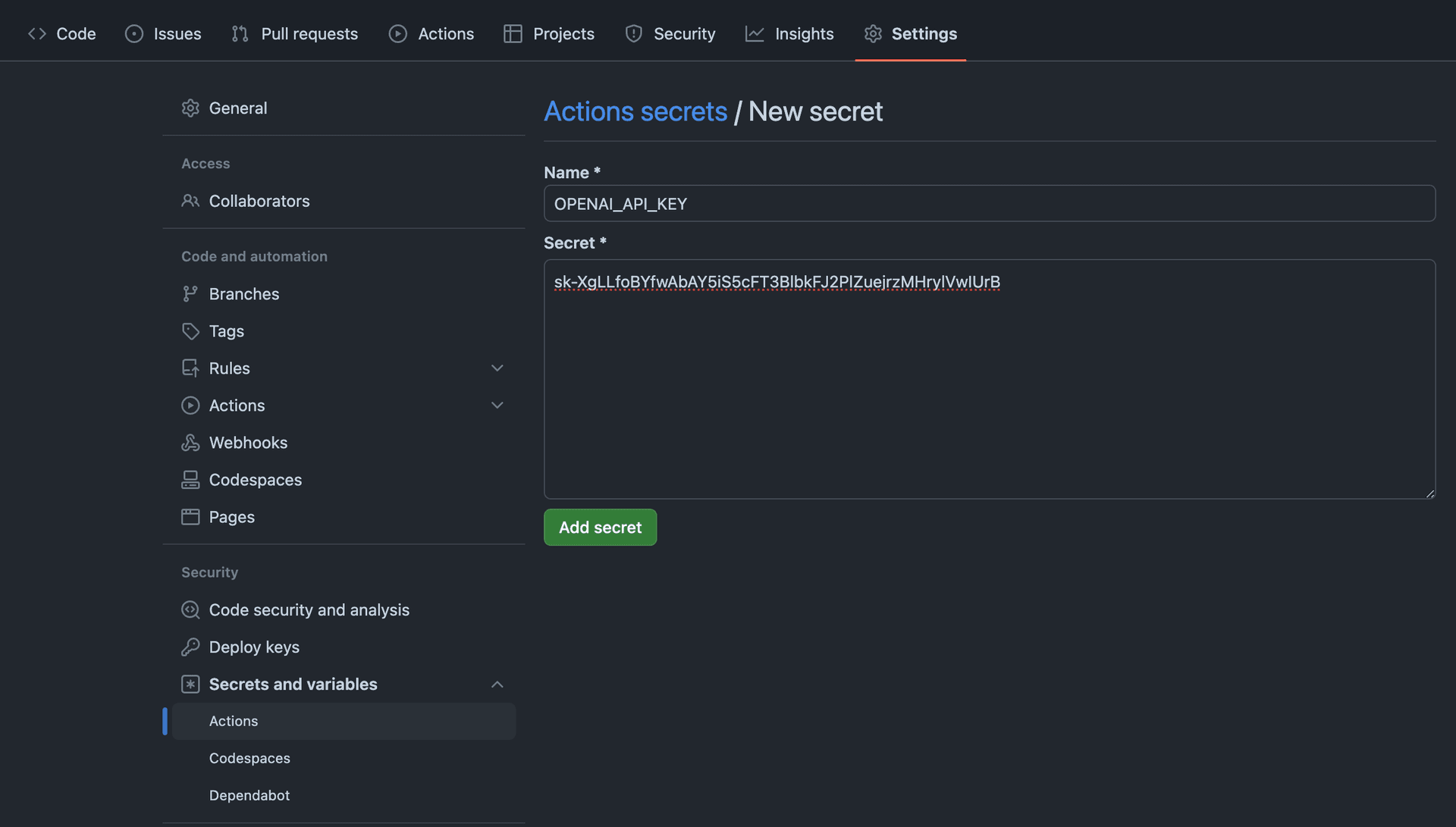 OPENAI_API_KEY: ${{ secrets.OPENAI_API_KEY }}