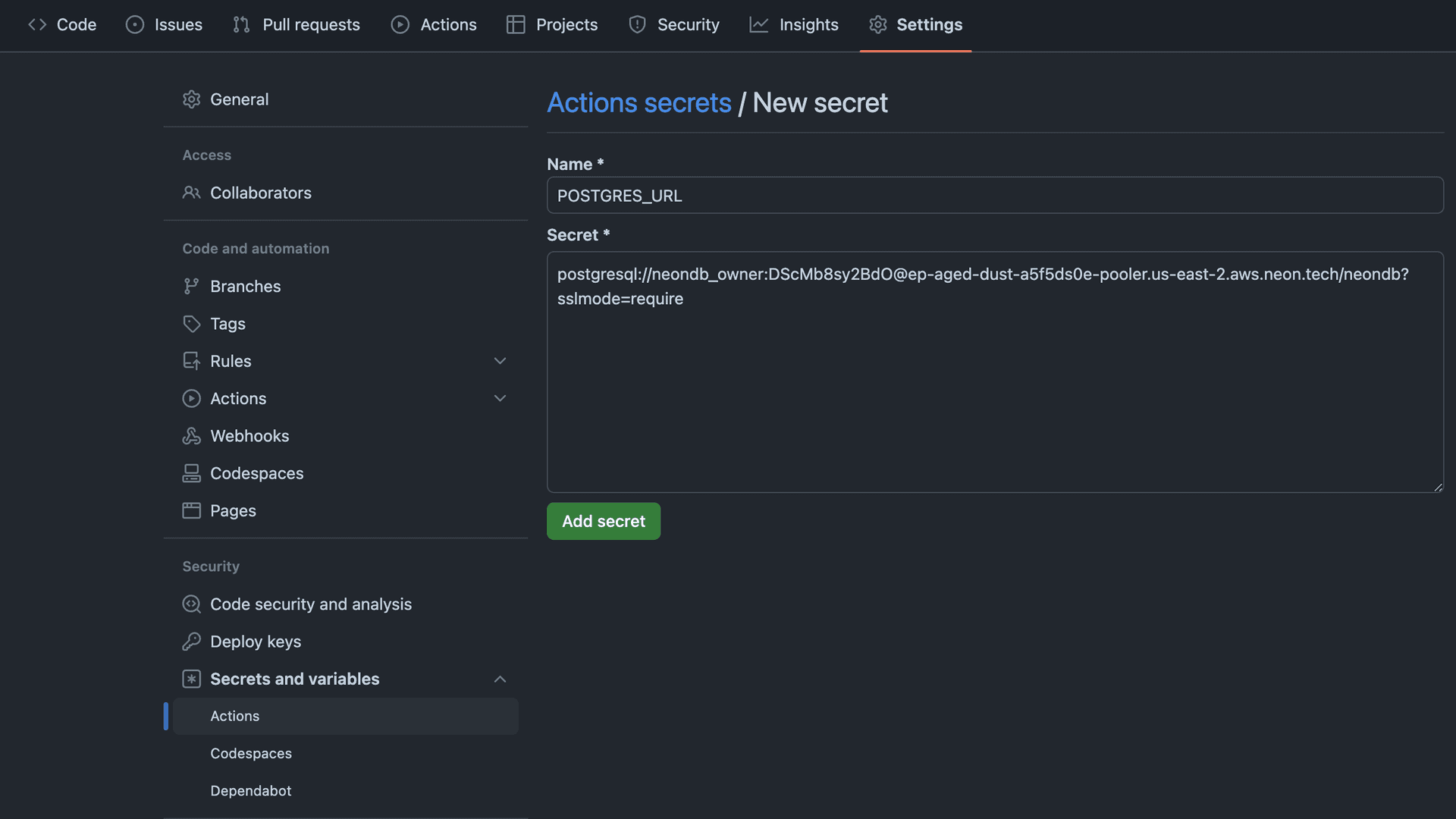 POSTGRES_URL: ${{ secrets.POSTGRES_URL }}