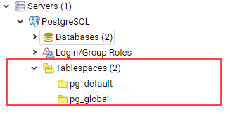 Tablespaces are where PostgreSQL stores the data physically. Tablespaces allow you to move your data to different physical locations across drivers easily by using simple commands.